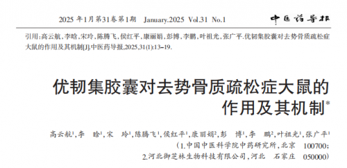 产品的科学性与有效性,更需要严谨的数据支撑。为此,御芝林联合中国中医科学院中药研究所等权威科研机构,持续推进产品上市后再研究,其发表于中医药核心期刊《中医药导报》的《优韧集胶囊对去势骨质疏松模型大鼠的功能及其机制》研究证实,优韧集能有效改善模型大鼠的骨质疏松,促进骨形成,抑制骨吸收。这为优韧集提供了客观的科研验证。另外,“优韧集改善骨质疏松作用机制研究”获河北省科技厅认证为“国内领先技术”,确立了行业标杆地位。