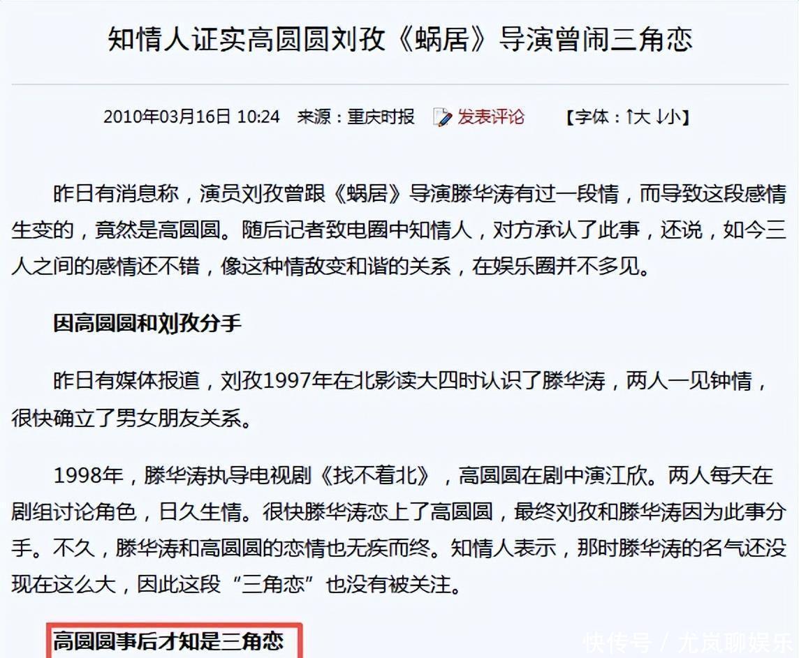 后来有个知情人透露,高圆圆一开始并不清楚情况,直到发现滕华涛和刘孜的关系后,才知道自己卷进了三角恋。最终,这段感情也以分手告终。