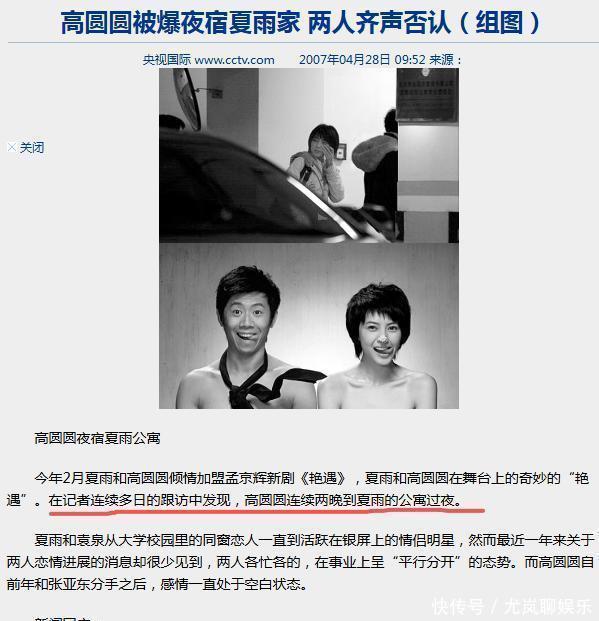 那会儿夏雨正和袁泉在一起,这消息一曝光,整个网络都炸开了锅。事后,夏雨跟高圆圆都出来澄清了,说自己没有同居,甚至还嫌报道“太无聊”。不过,对于关于“夜宿公寓”的事,他们没有正面回应。